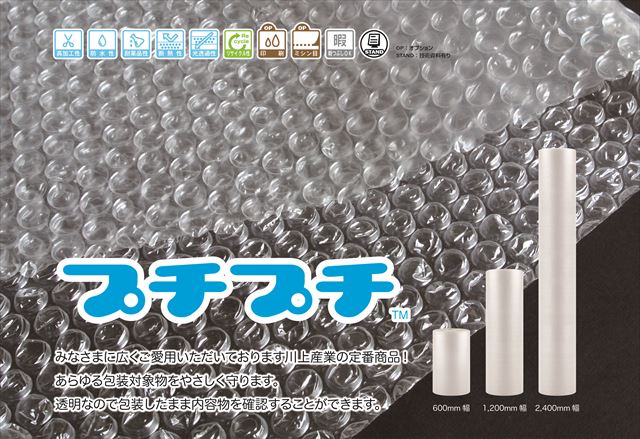 ポリエチレンフィルムで成形された気泡緩衝材です。クッション性に優れ、梱包用、保護材、緩衝材として幅広く利用されています。