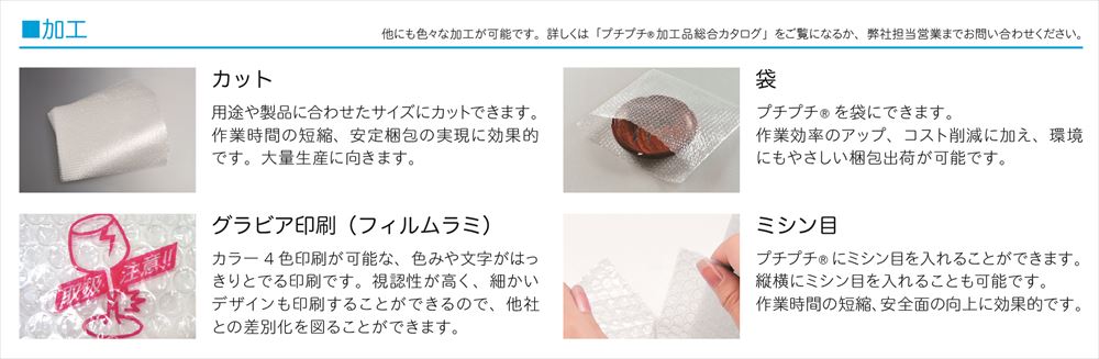 カット・袋加工・ラミネート加工など、様々な加工が可能です。